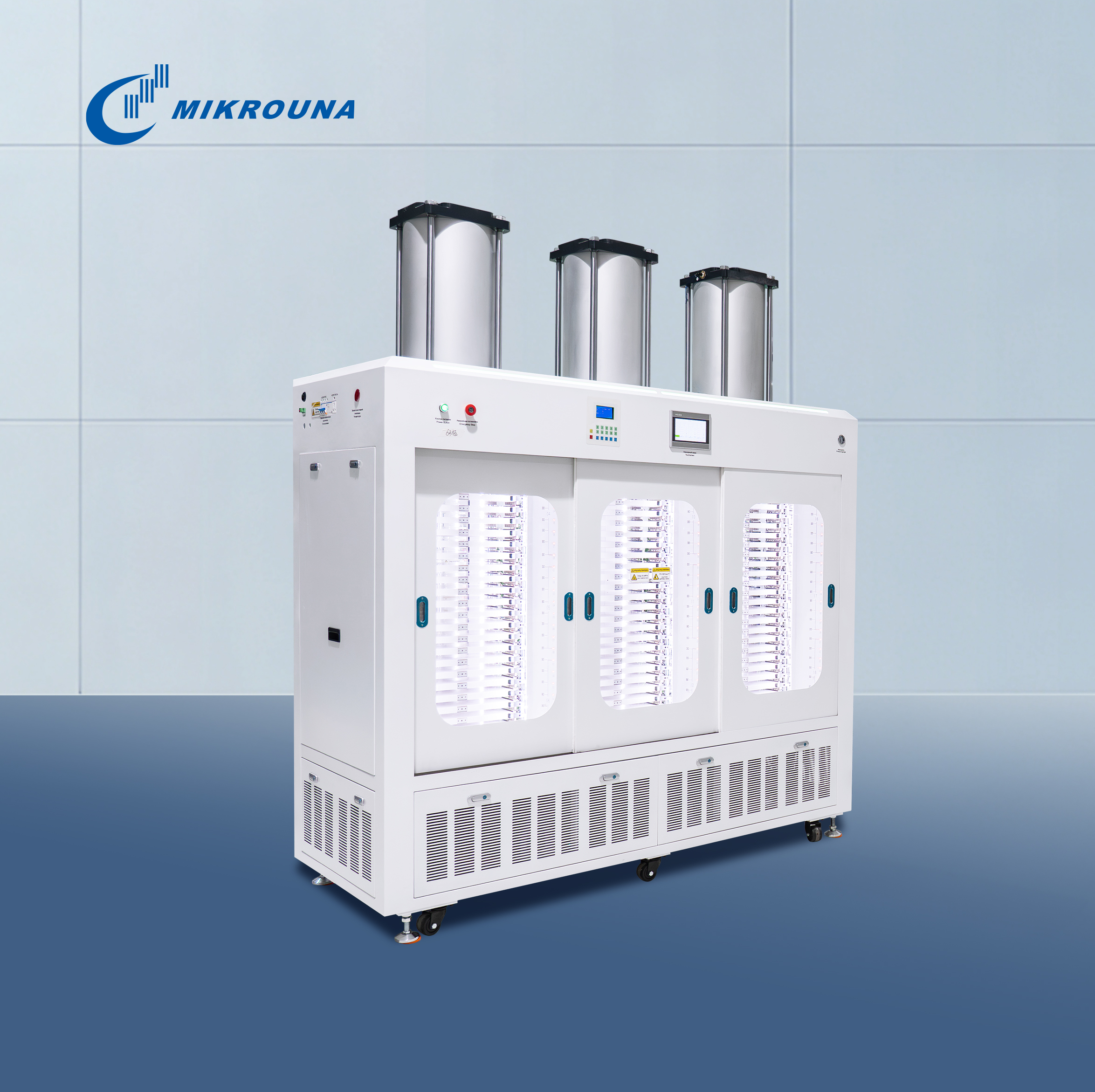 2、电源采用双向逆变电源;设备功耗更低,转换效率更换高,放电电量自动回馈到电网,降低车间因电源充放电带来的热量更低,设备单通道独立工步跳转,避免电网舜时功率。