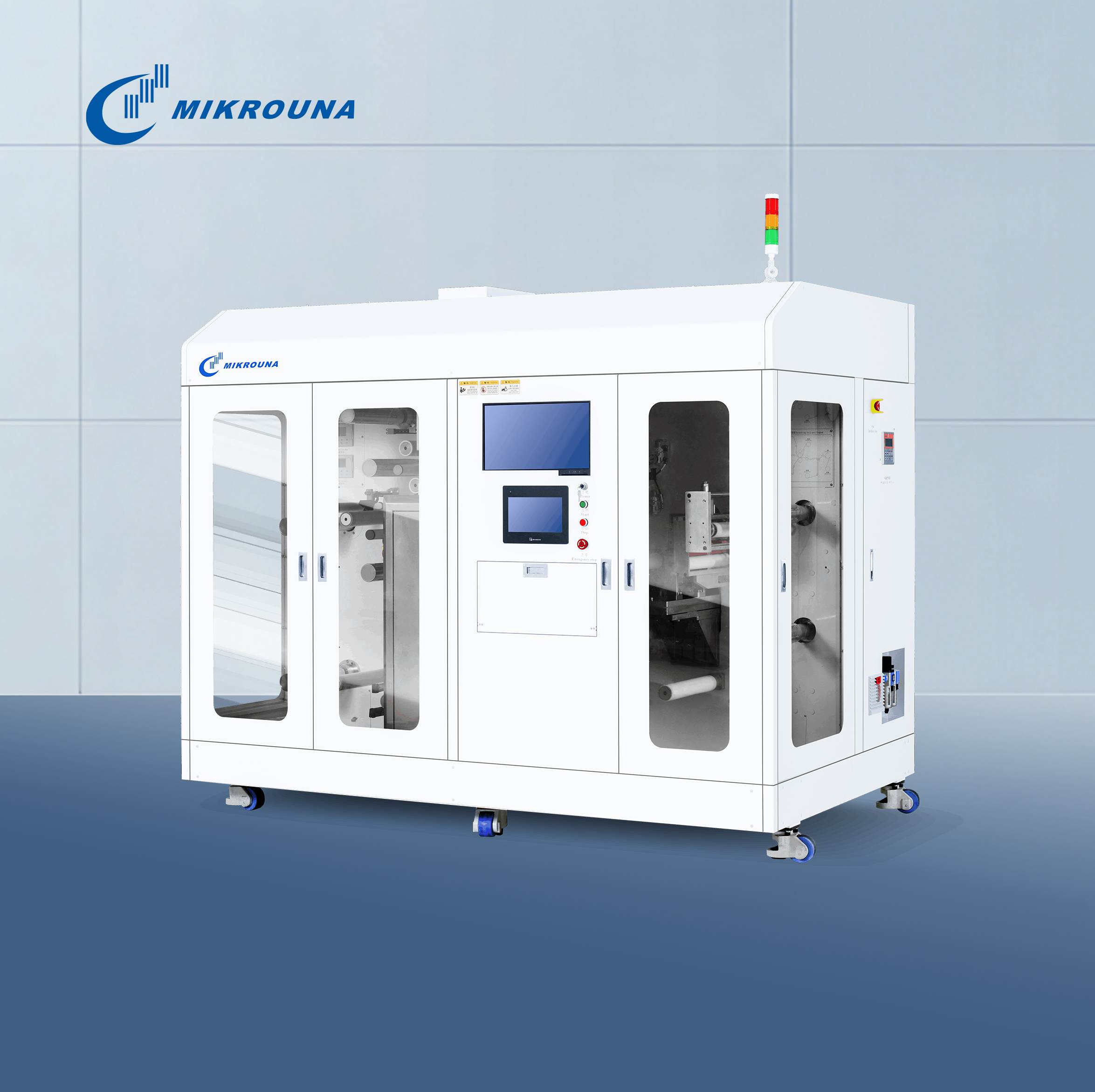3、智能控制:PLC全自动系统 + 伺服收放卷(纠偏±25mm)+ 恒张力磁粉制动;